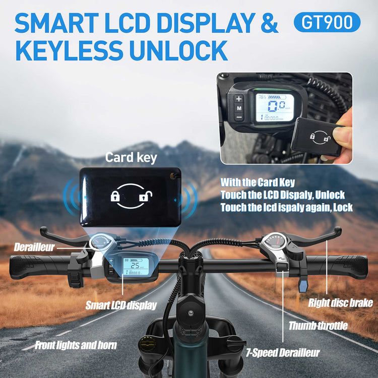 The GT900 Adult Mountain E-Bike is more than just transportation. It is freedom on two wheels. Whether you are conquering trails or cruising through town, this bike is built to make every ride better.