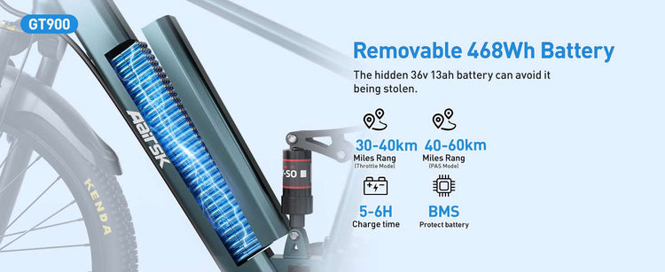 • Removable & Convenient: The 36V 13Ah (468Wh) lithium-ion battery slides out easily for charging. Charge it at your desk, in your apartment, or anywhere with a standard outlet.